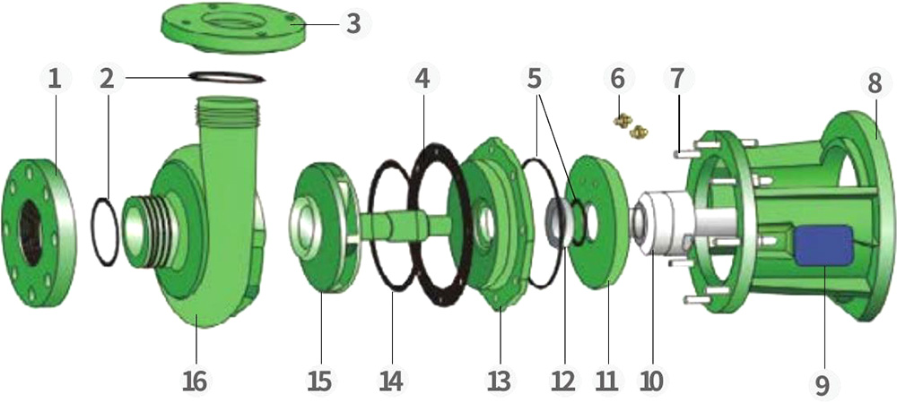 Naša továreň sa špecializuje na výrobu celoplastových odstredivých a samonasávacích čerpadiel odolných voči korózii z dvoch materiálov — PVDF a FRPP — v štyroch sériách (FV, FP, FVZ, FPZ). PVDF čerpadlá sú vhodné na čerpanie silných kyselín, silných oxidantov, halogénov, aromatických uhľovodíkov, alifatických zlúčenín a chlórovaných rozpúšťadiel s rozsahom prevádzkových teplôt od -40°C do 140°C. Čerpadlá FRPP sú ideálne pre silné alkálie, ako aj všeobecné kyseliny, zásady, soli a ich deriváty s rozsahom prevádzkových teplôt od -40 °C do 90 °C. Čerpadlá sú zvyčajne poháňané energeticky účinnými motormi typu Y. Na požiadanie je možné dodať motory odolné proti výbuchu.