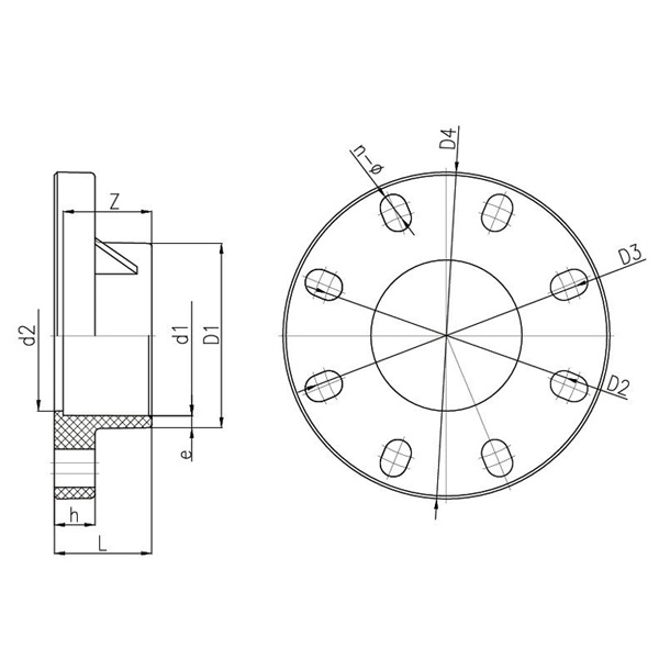 DN D1 D2 D3 D4 d1 d2 L h Z e n-Φ