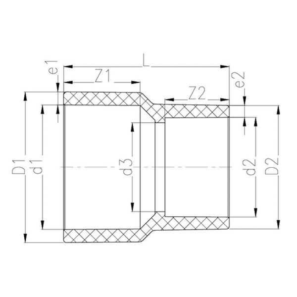 PVC-C redukcia potrubia DN15*20-600*500 GB Štandard