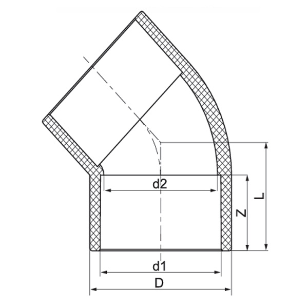 PVC-U 45° Koleno DN15-600 1/2"-24" ANSI Norma