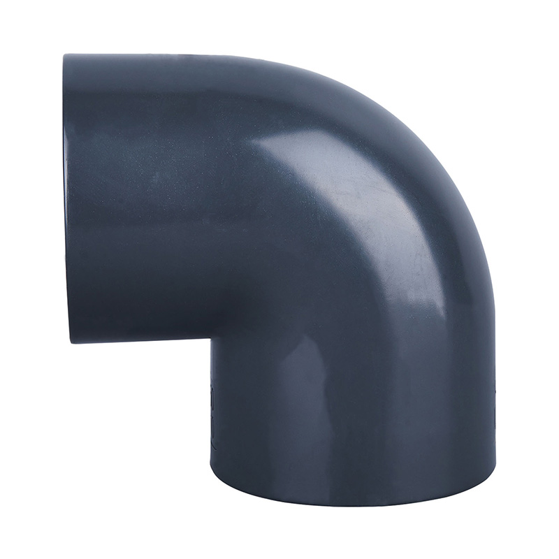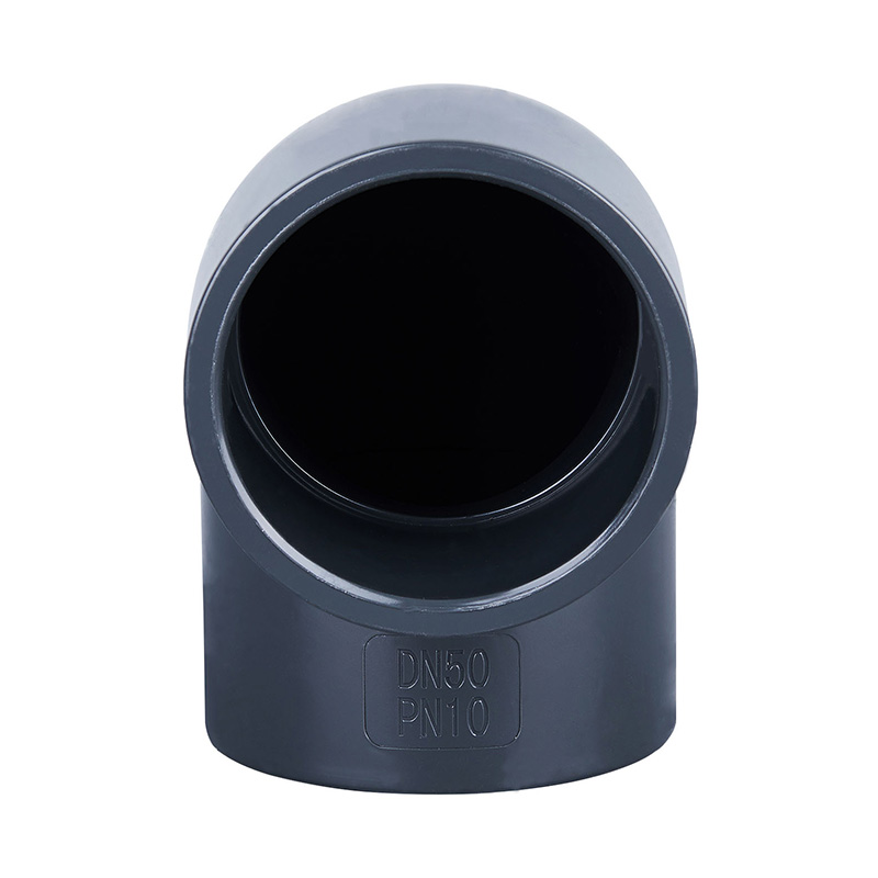 Vysokokvalitné plastové potrubné tvarovky tmavosivé PVC-U 90° DN15-DN600 pracovný tlak 1,0-1,6 MPa pre chemický a vodárenský priemysel.