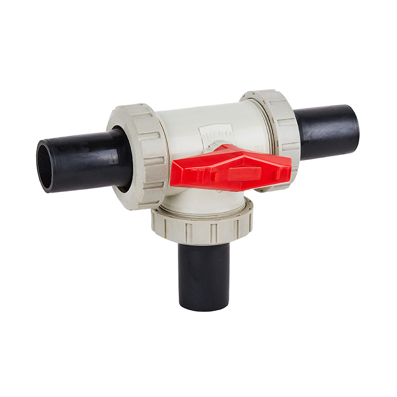 Vysokovýkonný PPH T-kus Ručný guľový ventil so zásuvkou Vysokoteplotný DN15-DN100 priemyselný plastový ventil pre zásobovanie vodou