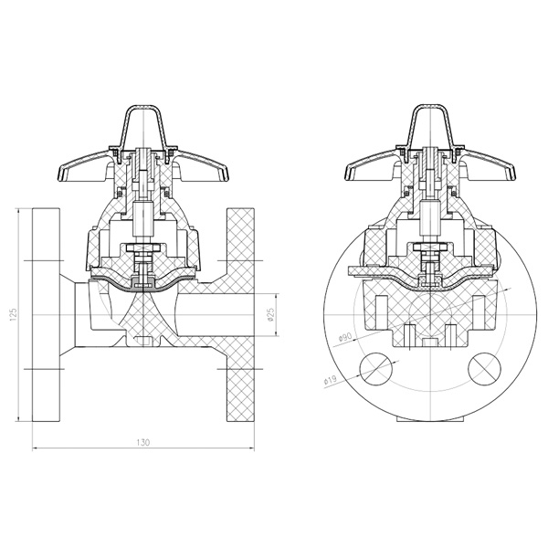 Detailný výkres zostavy membránového ventilu