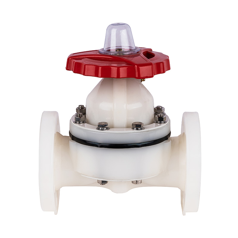 Vysokokvalitný nový PVDF prírubový 1-cestný membránový ventil pre chemický priemysel, biely, stredný tlak, štandard ANSI
