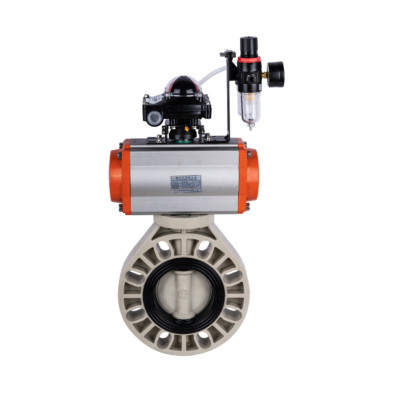 PPH pneumatický automatický škrtiaci ventil, stredové tesnenie, mäkké tesnenie, DN32-1000, plastový škrtiaci ventil pre priemysel a domácnosť