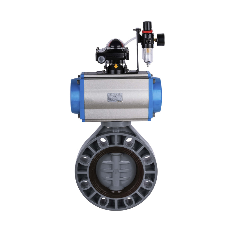 PVC-C pneumatický ovládaný škrtiaci ventil, stredové tesnenie mäkké tesnenie DN32-1000, priemyselný a bytový plastový škrtiaci ventil ANSI štandard