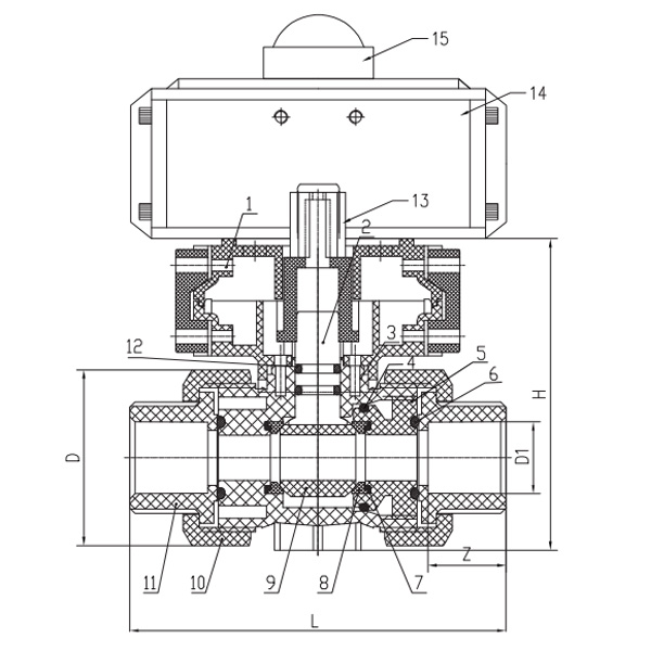 PVC-U Q661F-10U pneumatický guľový ventil s dvojitým hrdlom DN15-100 GB štandard