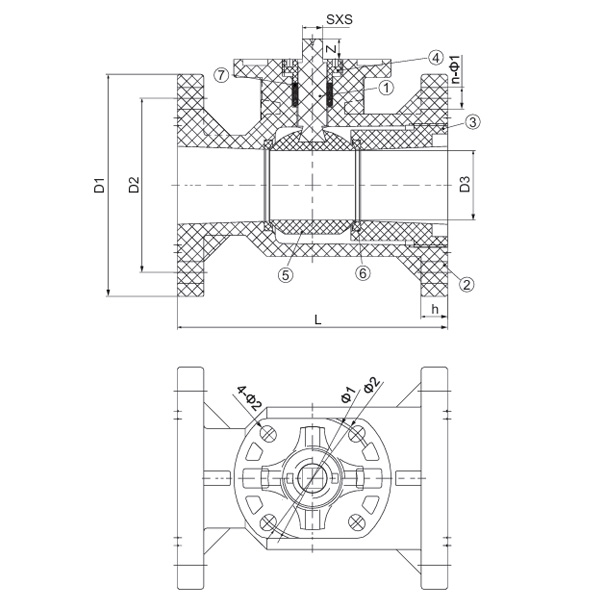 Špecifikácia D1 (mm) D2 (mm) D3 (mm) L (mm) h(mm) n-Φ1 (mm) Φ1 (mm) Φ2 (mm) SXS (mm) 4-Φ2 (mm) Z (mm)