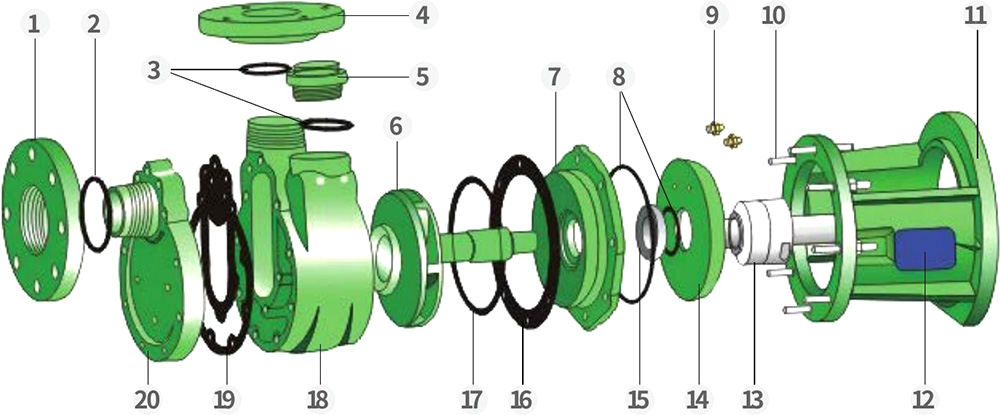Naša továreň sa špecializuje na výrobu celoplastových odstredivých a samonasávacích čerpadiel odolných voči korózii z dvoch materiálov — PVDF a FRPP — v štyroch sériách (FV, FP, FVZ, FPZ). PVDF čerpadlá sú vhodné na čerpanie silných kyselín, silných oxidantov, halogénov, aromatických uhľovodíkov, alifatických zlúčenín a chlórovaných rozpúšťadiel s rozsahom prevádzkových teplôt od -40°C do 140°C. Čerpadlá FRPP sú ideálne pre silné alkálie, ako aj všeobecné kyseliny, zásady, soli a ich deriváty s rozsahom prevádzkových teplôt od -40 °C do 90 °C. Čerpadlá sú zvyčajne poháňané energeticky účinnými motormi typu Y. Na požiadanie je možné dodať motory odolné proti výbuchu.